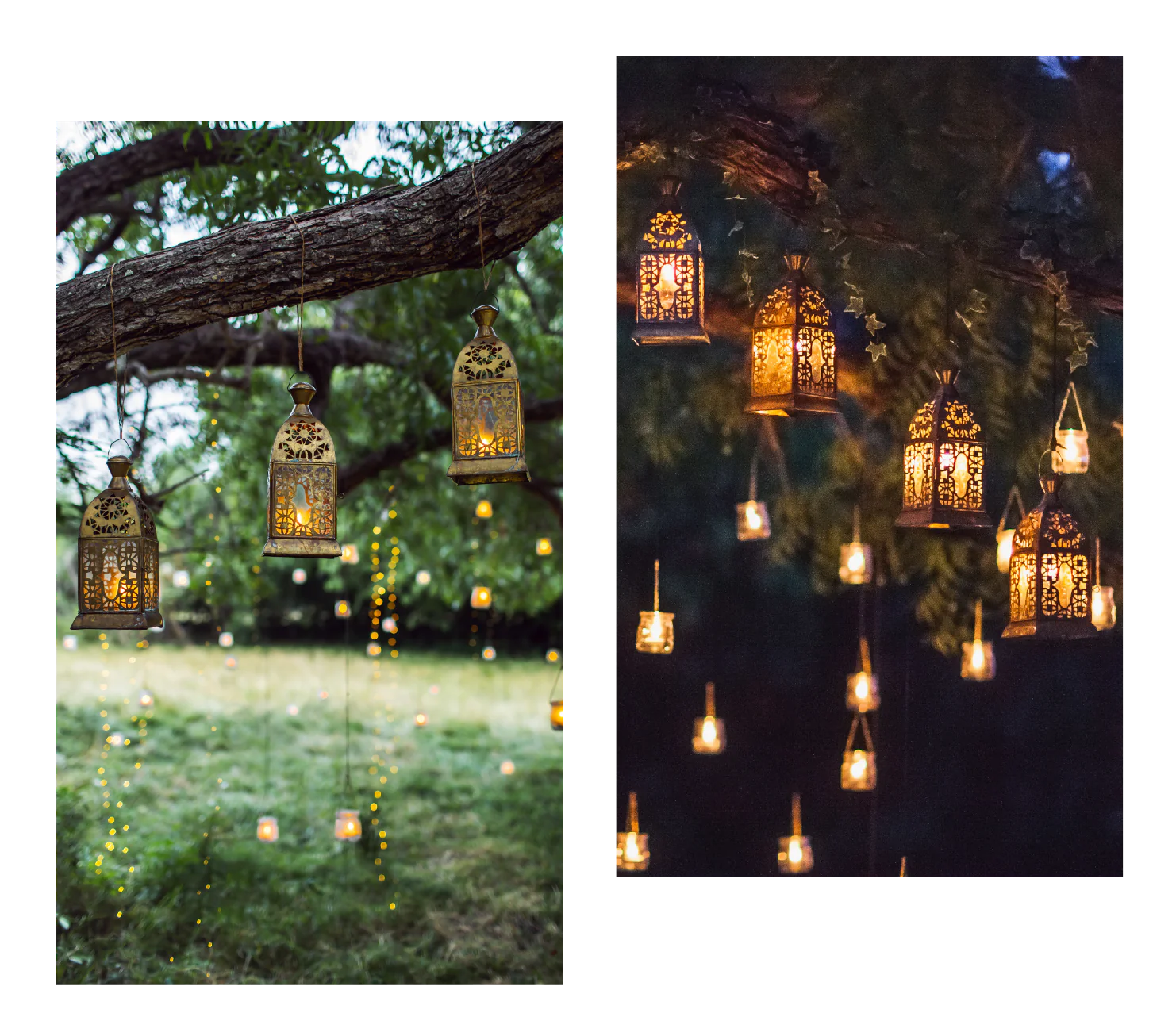 Whether the wedding is taking place indoors or out, creating a sky of stars will make for truly unparalleled settings. Simply place tealights in glass jars, lanterns or specially-designed suspension holders and hang them from tree branches, archways, ceiling beams, or marquee joists.