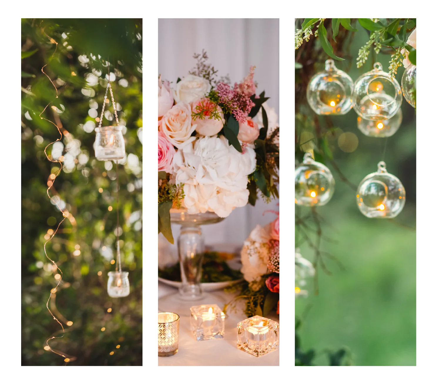 Favored for their ample burn time and compact, convenient size, votive candles can be used to create many different moods throughout a venue. Originally used for sacred prayers and special ceremonies, votive candles are the perfect choice for more traditional weddings.